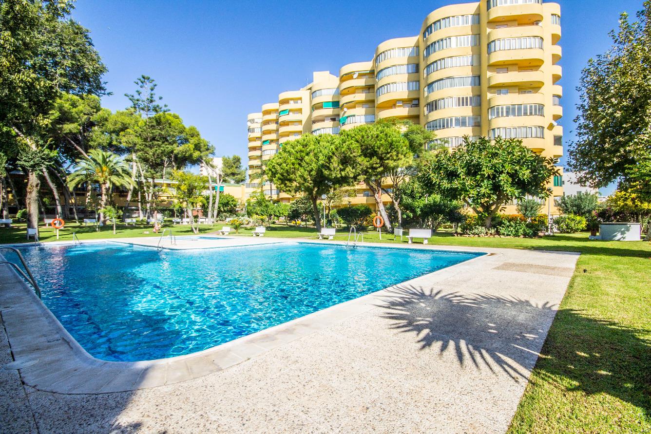 Apartamento de 2 habitaciones en zona La Carihuela. Vistas a la piscina y jardínes, amplias zonas comunes y piscina comunitaria.A 150 metros del paseo marítimo. Muy bien comunicada con supermercados, parada de bus y farmacia.